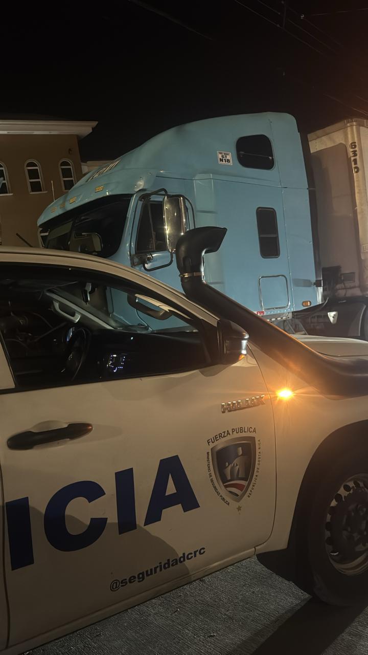 De acuerdo con el reporte oficial, tras recibir la alerta, unidades policiales se desplazaron hasta el sector de La Arena, específicamente en calle Guayabal, donde lograron ubicar el vehículo, el cual había sido robado en el sector de El Coyol de Alajuela. El camión transportaba motocicletas al momento del incidente.