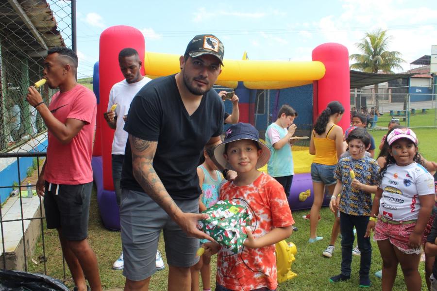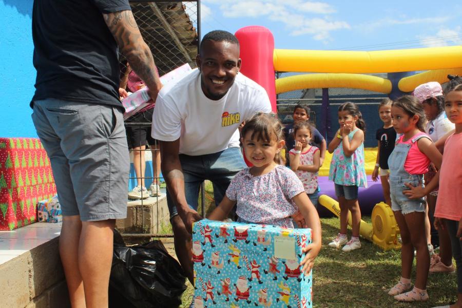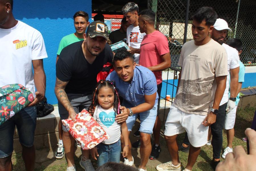 El Municipal Grecia le celebró a 60 niños de la comunidad de La Argentina una fiesta navideña en la plaza de fútbol de Peralta, que contó con un inflable, payasita y actividades con los jugadores del primer equipo.