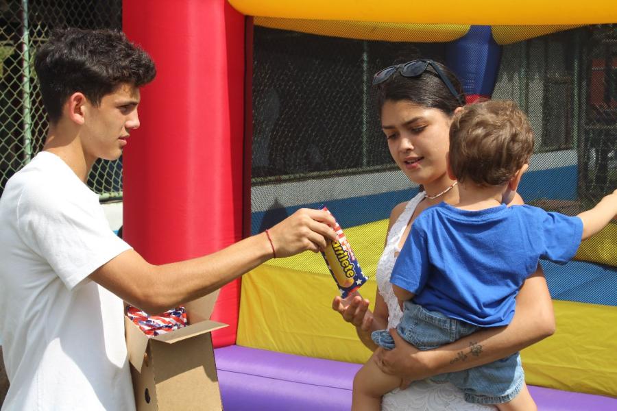 Llegó la hora de comer y empezaron con un delicioso algodón de azúcar, chocolates, pizza, perros calientes, refrescos y helados.