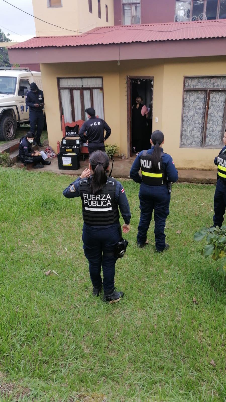 La Policía de Control de Drogas (PCD) y la Fiscalía allanaron una vivienda en San Juan de Grecia donde ubicaron 56 plantas de aparente marihuana, tamaños entre 60 cm a 90 cm aproximadamente, extractores grandes, químicos, sistemas de riego y maceteros para continuar con el cultivo, además algunas plantas con capullos secos listos para el consumo.