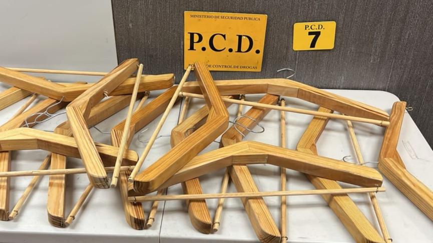 Oficiales de la Policía Control de Drogas (PCD) del Ministerio de Seguridad Pública detuvieron a dos pasajeros en el Aeropuerto Internacional Juan Santamaría en Alajuela, ya que en apariencia pretendían trasegar droga oculta dentro de ganchos de madera para ropa ubicados en el equipaje.