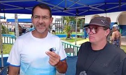 Katherine Alfaro y Gustavo Brenes organizadores del primer torneo de natación organizado por la Asociación de Natación Helénica Griega.