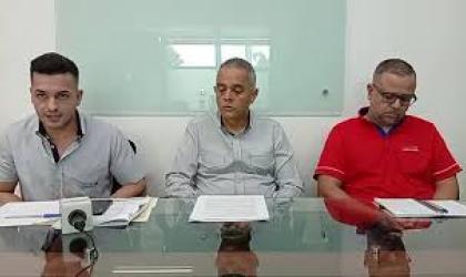 Alejandro Arias, Alejandro Salas y José Mario Murillo funcionarios municipales se refieren al remate de dos locales en el Mercado Municipal.